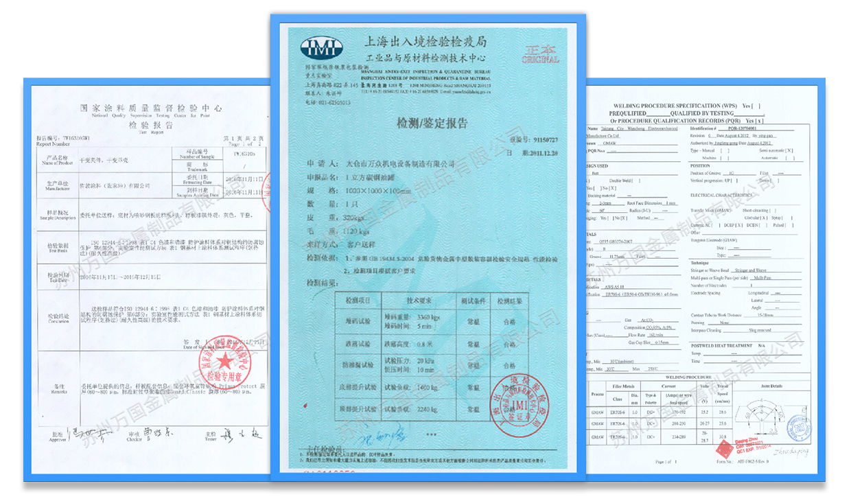 我們嚴(yán)格地運(yùn)行生產(chǎn)過程的質(zhì)量管控和成品檢驗(yàn),并擁有WPS焊接工藝評(píng)定、C4-H防腐認(rèn)證、罐體鑒定檢測報(bào)告等,確保給客戶提供高品質(zhì)、高性能的產(chǎn)品